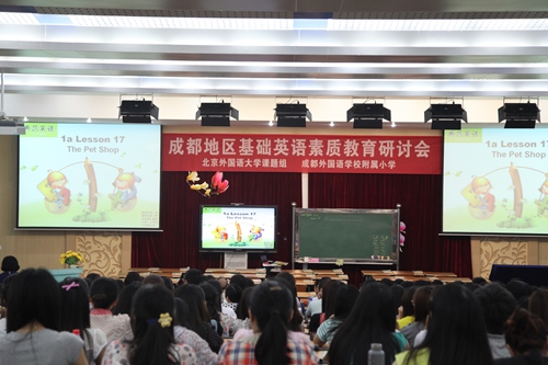 成都地区基础英语教学研讨会5月29日在我校举行,此次会议由北京外国语大学和我校承办,迎来了来自省内外的数百位领导和同仁。我校的周晓雪老师和付伶俐老师呈现了两堂精彩的典范英语课,分管英语的钟灵滋副校长做了阶段性成果汇报。省教科所的英语教研员付春敏老师和北外的韩宝成教授做了精彩的点评,对我校的英语教学给予了高度评价!