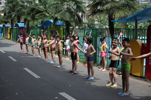 With the coming of summer, since June 5th, swimming lessons have started ! And swimming lesson will be in curriculum planning by the Guidance offices.Teaching department and daily life department work closely in order to ensure the safety of children. Teachers well organizes every swimming lesson that the campus is full of laughing in this summer.