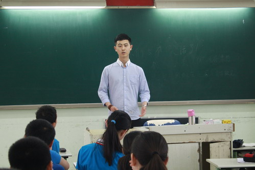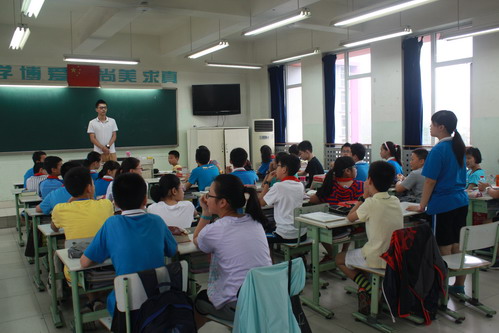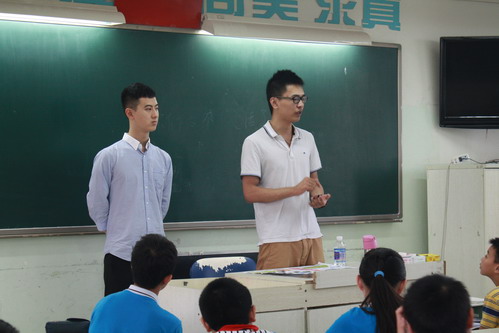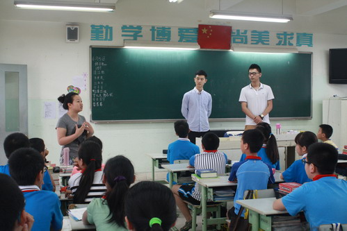 On June 6th ,Sun Lelin studying at Pennsylvania State University of American and Zhao Feng a IT Engineer returned to their Alma Mater and shared their experience of studying abroad.Sun Lelin and Zhao Feng was one of the first graduates of our school. After primary school they entered Chengdu Foreign Language School, and then they studied abroad .Today, they told the relevant circumstances of study abroad to six grade students , such as: learning environment, the living environment of foreign countries; the application for foreign schools; the importance of community voluntary labour. The two elder brothers depicted the colorful life of study aboard with humor that attracted students from yearning. At the same time, they encouraged students to seriously study and to be a person who is full of cultural knowledge and cultivation .