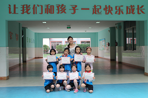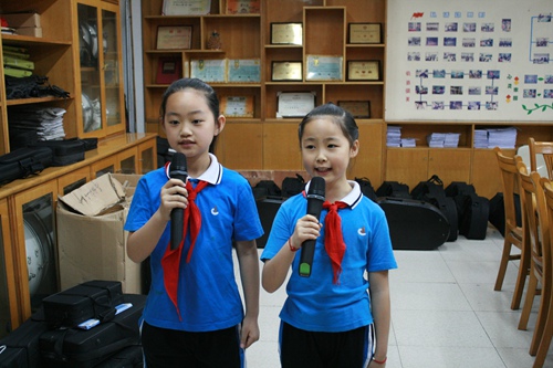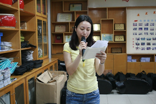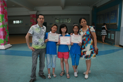 艾老师宣布在放飞梦想纸飞机比赛和金牛区中小学艺术调研比赛中获奖同学名单