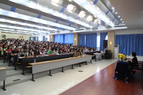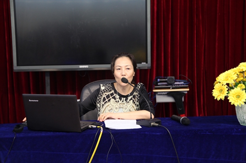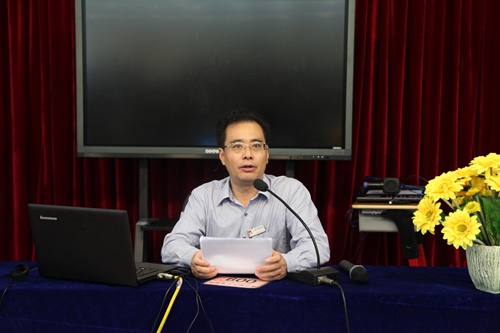 8月28日上午弥校长、吴校长、岑校长在五楼多功能厅进行对全体教师做新学期培训。