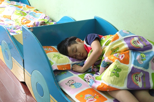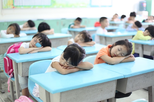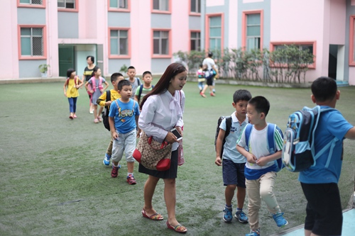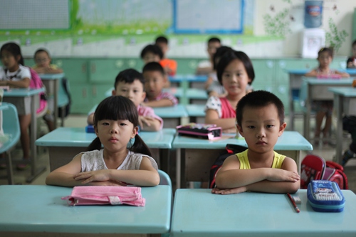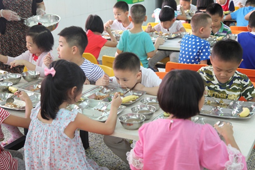 After saying goodbye to their parents and grandparents, children ate the first meal at school. Look! the children were eating very greedily.