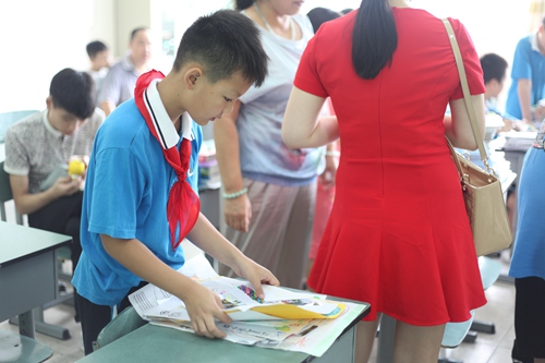 先回到学校的同学已经开始帮助老师收同学们的假期作业