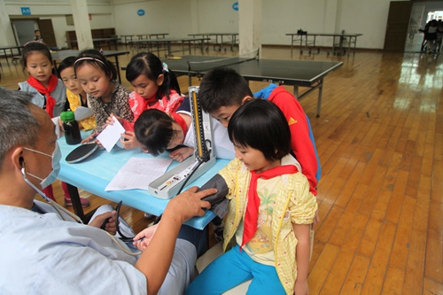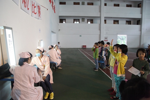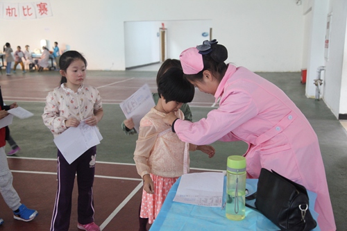 The children under the guidance of teachers orderly had the examinations which reflects the good spirit. To keep a healthy body to have a better future. Wish every child can grow up healthily!
