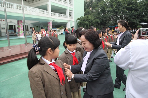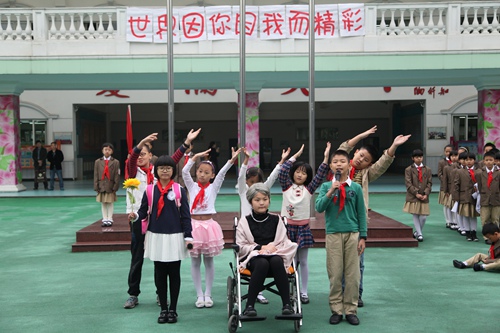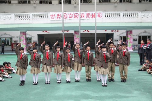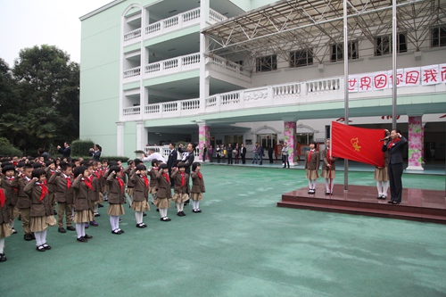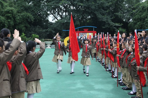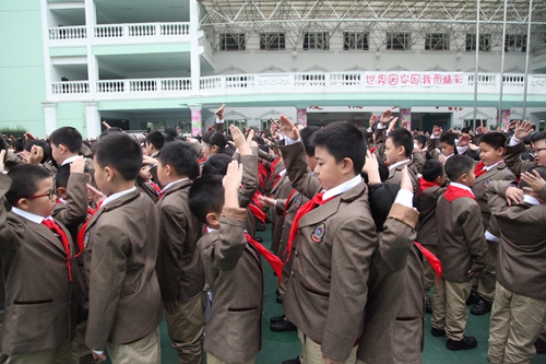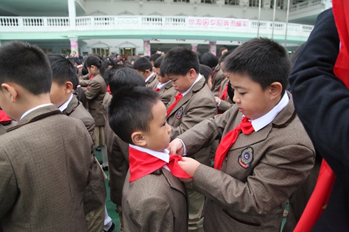 On October 13th , it is an anniversary that Chinese young pioneer team built 65 years. This morning, a founding day commemoration was held in the our school .on the ceremony, the first grade kids were honor to join the young pioneers and school leadership gave awards for the newly elected brigade Committee. Then , with the theme by " wonderful world because of you and me" some students performed wonderful shows.