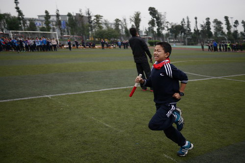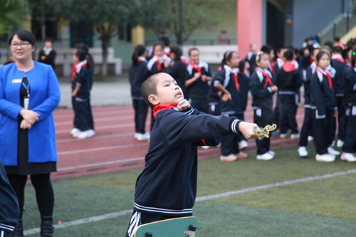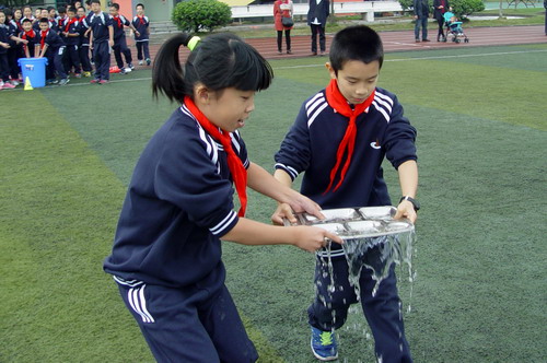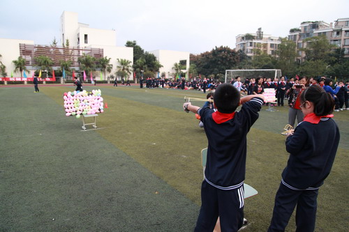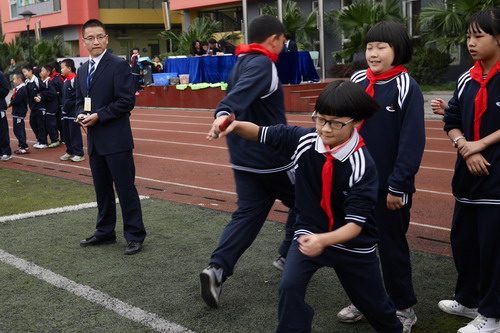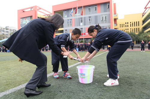 On the Sports Day , the most important part is the group work , that each class every students participated. It trained the spirit of cooperation of children. Group work included : jump rope, shuttle race, ants carrying water and slingshot shooting. These required children to cooperate with each others as himself was a small part.
