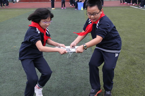 本次体育节,最重要的部分是团体项目,每个班全员参与,整齐行动,注重培养孩子们的协作精神,凝聚团队力量。集体项目分为:集体跳长绳,迎面接力赛,蚂蚁运水,弹弓打靶。这些运动要求孩子们将自己当成一个个小小的零件,团结合作,共同努力,打造一强悍的战舰,驰骋赛场!