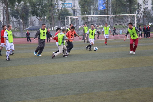 团体项目以后是亲子游戏,孩子们和家长代表共同参与,每个班4组家庭代表,母亲、父亲和孩子一起比赛,其乐融融。之后进行的是老师和家长的足球赛,战况异常激烈。孩子们在赛场上看到了爸爸妈妈们的努力,都鼓足了劲儿为自己的爸爸妈妈加油。加油,爸爸妈妈们!加油,孩子们!让我们跟着自己的节拍动起来,让健康充满我们生活中的每一个角落!
