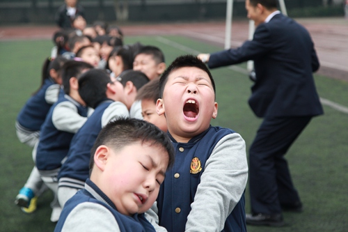 激烈的拔河比赛,老师都恨不得上去拉一把