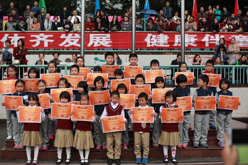 11月7日,我校体育节进入尾声。万众瞩目的师生项目、亲子项目陆续登场,整个校园成为欢乐的海洋。可爱的一年级,活泼的三年级为大家带来了精彩的团体操表演,博得家长们阵阵掌声,体育节即将过去。让我们记住这份奔跑的快乐,让我们铭记这份运动的激情,运动下去,快乐下去!