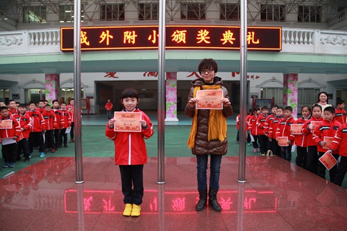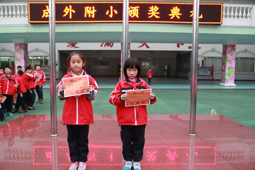 四年级二班和四年级三班,同学们在担任校园小卫士过程中,恪尽职守,受到学校师生的一致好评和认可,被评为“优秀校园卫士班级”。