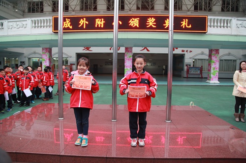 12月8日早上,我校举行了第十五周集体朝会。朝会上,学校为近期获得各种奖项的同学们颁发了奖状或证书。