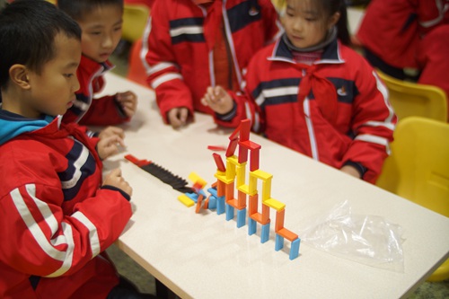 科学组甘晓锦老师向同学们介绍多米诺骨牌的有关知识