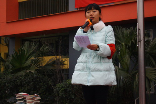 朱珊珊老师公布英语活动的相关安排并宣布五年级获奖同学名单