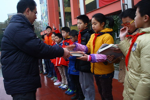 12月22日,我校中海校区举行第十七周集体朝会。本周星期四是一年一度的圣诞节,我校英语组开展了许多丰富多彩的活动,来庆祝这个快乐的日子。绘本展览、书籍展示、话剧展演、游园活动等项目能让孩子们体会到浓浓的异域风情,将孩子们带入一个个美丽的英语世界。今天,朱珊珊老师公布了本次英语活动的相关安排,并宣布了在“五年级图书共读【三国演义】知识竞赛活动”中获奖的同学名单。随后,学校领导为获奖同学颁奖!
