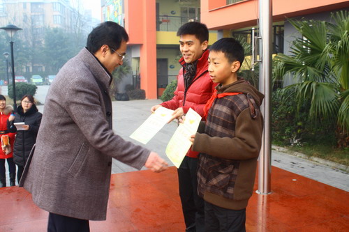 1月12日,我校中海校区举行第二十周集体朝会。临近期末,同学们都在认真复习,积极备战。今天,六年级的两位品学兼优的同学为大家讲述了自己的复习计划,抓住零星时间、合理归纳、善用易错题本等等,让同学们受益匪浅。随后,岑校长为在“2014成都青少年校园足球联赛(金牛赛区)”中获奖的同学颁奖。
