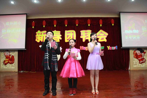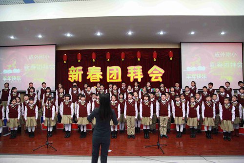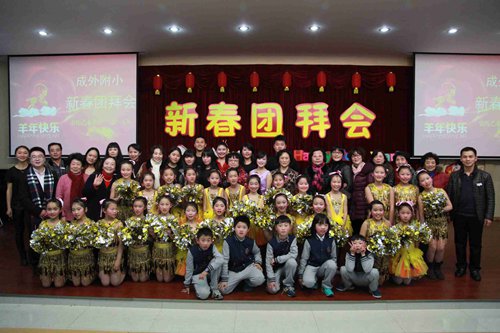 1月29日下午,我校在五楼阶梯教室隆重举行了2015年新春团拜会。全体成外附小人载歌载舞,以自己独特的方式,庆贺取得的丰硕成果,迎接新年的到来。在此,我们祝愿成外附小全体师生、全体家长新年快乐,幸福吉祥!祝成外附小的全体孩子们健康快乐地成长!
