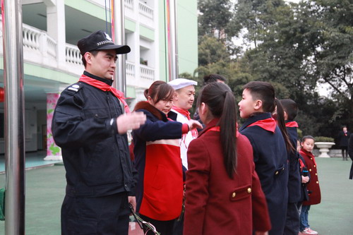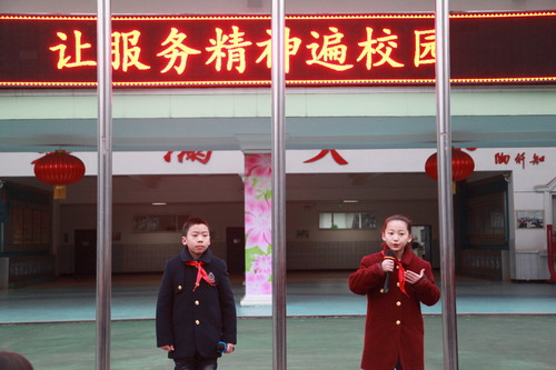 3月2日,我校举行新学期开学典礼。今早,我校以“让服务精神遍布校园”为主题举行了新学期开学典礼。会上,同学们为学校的服务性部门,来自保安、餐厅、保洁、后勤维修等部门的叔叔阿姨戴上红领巾,对他们的辛勤付出表示感谢。学校大队委也宣誓勤勤恳恳为同学们服务,并呼吁大家,从我做起,服务他人!