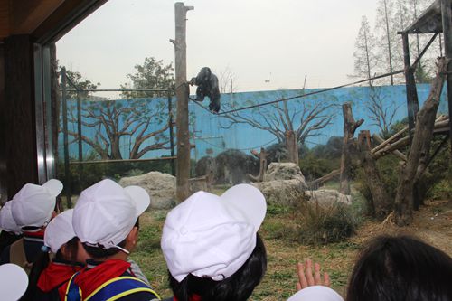 是什么动物吸引了孩子们的眼光呢?原来是可爱的猴子。