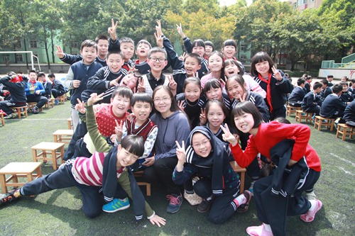 弥晓蓉校长鼓励孩子们积极动手动脑