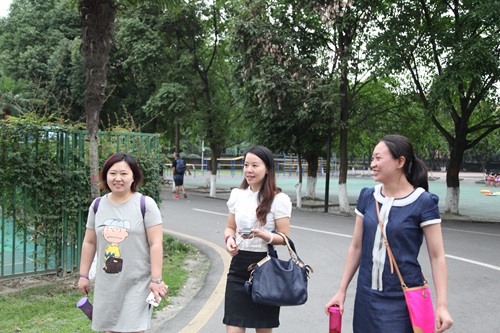 我校英语老师带领重庆的老师们参观校园