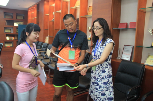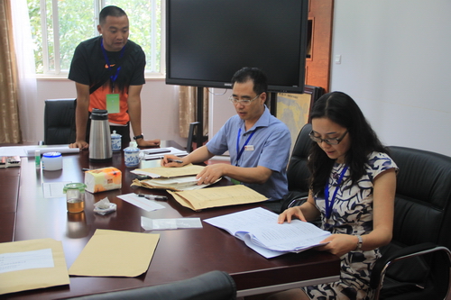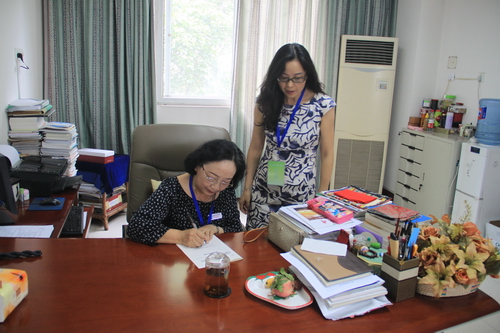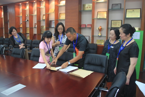 弥晓蓉校长和上级部门的负责人一起检查相关的准备工作