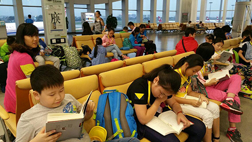 有序集合、排队、贴标签、系丝带、托运行李、过安检、出关、候机、加餐,安安静静、快快乐乐、从从容容、大大方方。我告诉孩子们机场里的消费比较高哦,而且一会儿上飞机有吃的,几个小朋友就决定吃自带的零食,其他小朋友都去加餐啦。加足了“油”,孩子们就安静地看起书写起日记来。此刻,我们就快登机啦,心里小激动哦,欧洲之行开始啦,愉快的暑假开始啦!亲爱的爸爸妈妈们、爷爷奶奶们,再见啦!