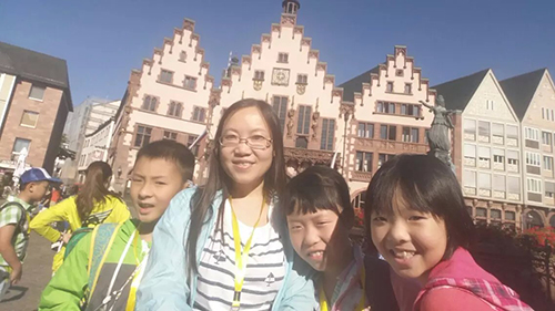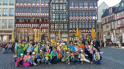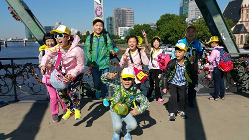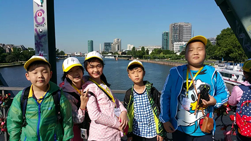 我们的第一站法兰克福,阳光和煦,天蓝得没有一丝杂质,空气洁净,坐在客车上孩子们已经按捺不住,举起相机拍呀拍。