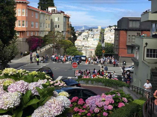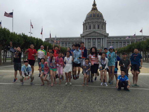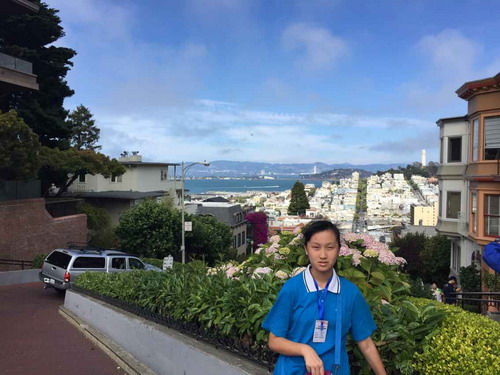 7月4日,美国的国庆日。上午在清晨的阳光中离别了美爸美妈,虽然只有短短三天的相处时间,但情谊深深。下午,孩子们前往科技体验馆,在这个科学与艺术结合的探索博物馆里,孩子们动手感知,亲手体验了各种自然科学原理,馆内朴实无华且丰富多彩的展览形式深受孩子喜爱。随后,孩子们来到了全美国最奇妙的街道---九曲花街,顺着花街两旁的人行道徒步往上攀,饱览一路各色簇拥在一起的绣球花,并站在花街高处远眺海湾大桥,真是美不胜收!孩子们还参观了市政广场,并在这精美、气势宏大的建筑前留影。美味、地道的中国菜,让孩子们带着甜蜜的微笑进入了梦乡!