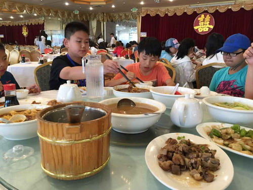 晚餐是正宗的中国菜,孩子们都很高兴。