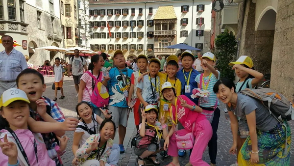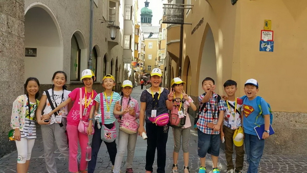 孩子们对黄金屋顶没有兴趣,最着迷的是街边的那口泉水,来自阿尔卑斯山的地下水在酷热的天气里冒着丝丝白气,手伸进去冰凉透骨。孩子们用冻红的手冰老师的脸,得意地哈哈大笑。想象几百年前的人们在夏日里从泉水中取出冰镇的美酒,那一刻真是醉人。
