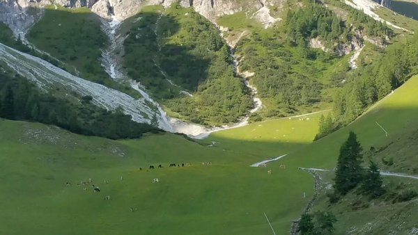 六点,蜜色的阳光已经洒满房间,推窗望去,才看清昨晚入住的奥林匹克村,竟然是辽阔的天然牧场:远处阿尔卑斯群峰上雪已化去,裸露出象牙白的花岗岩,被阳光照得熠熠生辉;从半山腰一直绵延到山脚的,是茸茸的绿草,正是花开时节,野花遍地。奶牛们迈着缓慢的步子,摇着清脆的牛铃,从背山处的栅栏里鱼贯走出。山谷里回荡着叮叮咚咚的牛铃声和哞哞的奶牛声,引起孩子们的阵阵惊呼--好梦幻呀,老师!