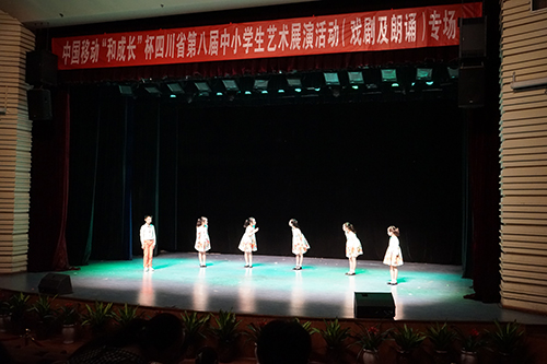 8月14日,我校学生参加四川省第八届中小学生艺术展演活动。本次省艺术展演活动由四川省教育厅主办,在成都市劳动人民文化宫举行,并邀请了多位知名专家担任评委。我校的朗诵“林中乐队”作为成都市的一等奖,代表成都市参加了省艺术展演活动。孩子们声色并茂的朗诵,极富感染力,充分展现了我校学生的综合素养和精神风貌!