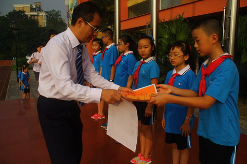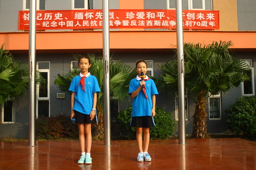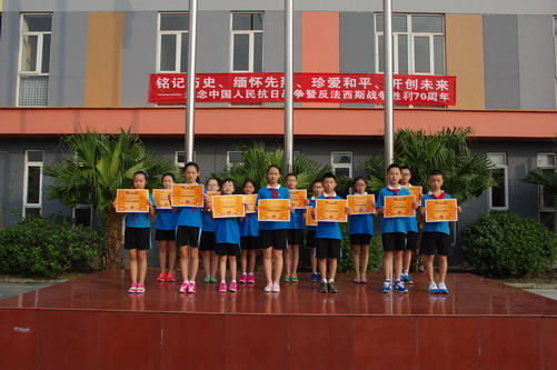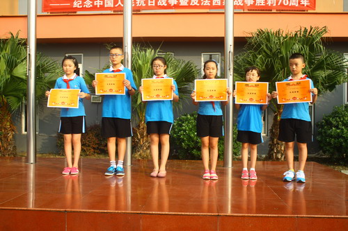 9月1日,我校中海校区举行新学期开学典礼。70年前的9月3日,革命先辈们凭借顽强的意志打败了日本侵略主义,为此,我们付出了巨大的牺牲。现在的和平来之不易,我们要铭记历史,缅怀先烈,珍爱和平,开创未来。岑校长号召大家心怀感恩之心,从小事做起,从自己做起,铭记历史,开创未来。三位来自五年级三班的同学更是与同学们分享了自己对“反法西斯战争胜利70周年”纪念活动的心情点滴。随后,学校领导为上学期获得“校级先进班集体”和“零意外安全事故班级”的班级颁奖!同学们,我们要继往开来,铭记历史,努力学习,珍爱和平,开创未来!