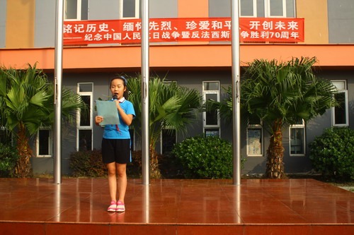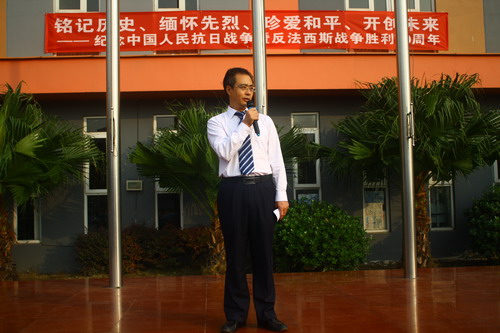 岑校长做激情演讲,号召大家心怀感恩之心,铭记历史,开创未来。