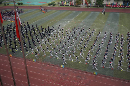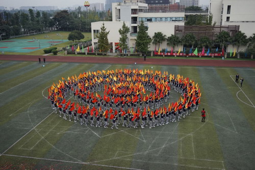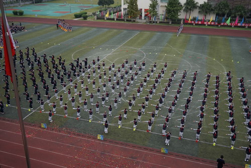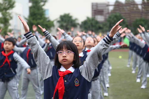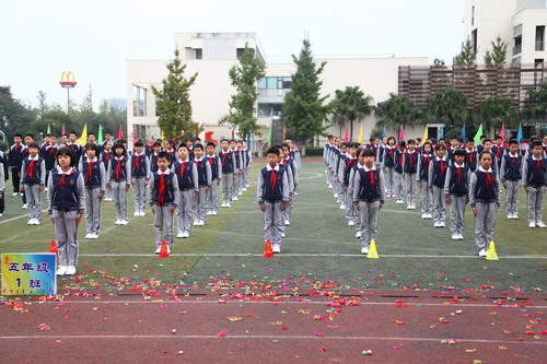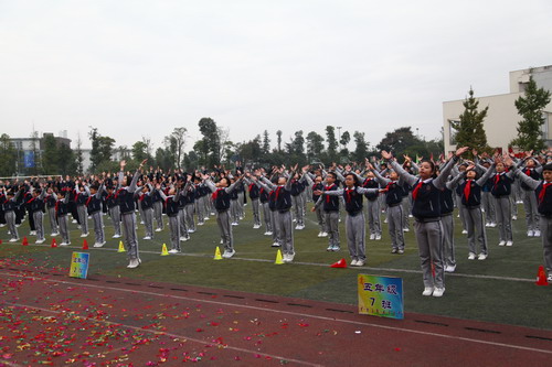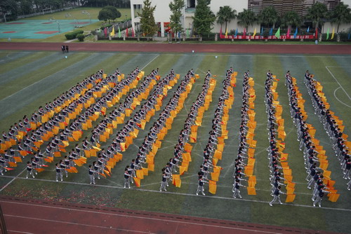 10月29日,我校中海校区举行第十五届校园体育节。开幕式后的团体操表演也异常精彩,五年级的同学们利用课余时间排练了以“汇聚、发展、翱翔、和平”为主题的团体操,各班同学全员参与,团结协作,为我们献上了一场宏大的赞礼。五、六年级的同学们还表演了广播体操“七彩阳光”,整齐划一的动作,专注的表情,震撼人心!