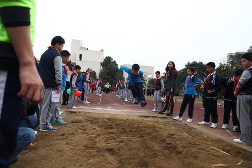 本届体育节的田径项目有100米,400米,跳高,跳远,投实心球。每个项目分男子组和女子组,预赛、初赛、小组赛都在前一个月里决出名次,本次比赛是最后的决赛。赛场上,孩子们挥汗如雨,奋力拼搏;赛场下,班上的同学,呐喊助威,充分体现了班级的凝聚力。老师们也积极参加运动,强健体魄。