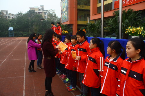 学校领导为获奖同学颁奖。