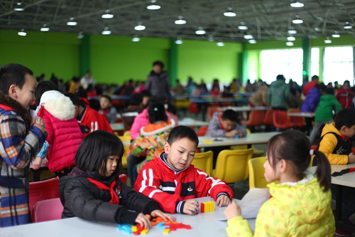 12月17日下午我校三年级在科学老师的安排下于二楼餐厅举行多米诺骨牌比赛。