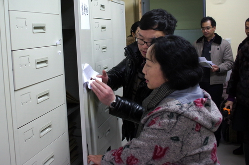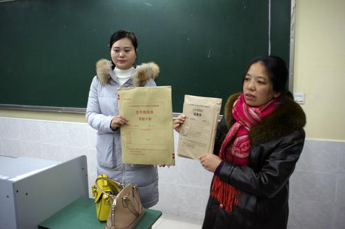 弥晓蓉校长当众开启文件柜,与外校教师一起宣布参加调研测评的学生名单