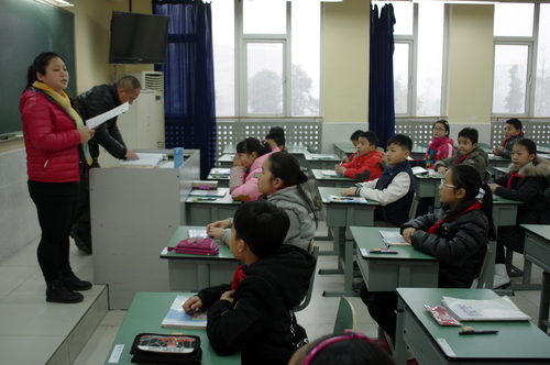 我校弥晓蓉校长、岑际伦副校长和五年级的老师们参加调查问卷
