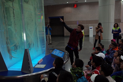 台湾一团二团的孩子们在大王鱿鱼前合影