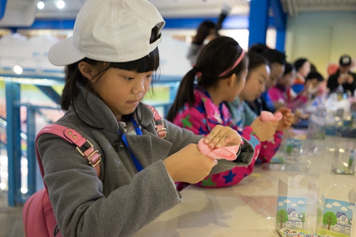 1月29日,孩子们参观了毛巾蛋糕店,并在店员姐姐的帮助下,自己制作了毛巾蛋糕。