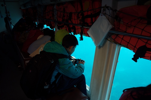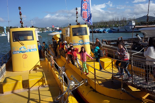 1月31日早上,台湾游学一团的孩子们来到垦丁的海边,乘坐半潜艇出海观察海底生物,一听说要坐船,孩子们都格外兴奋。