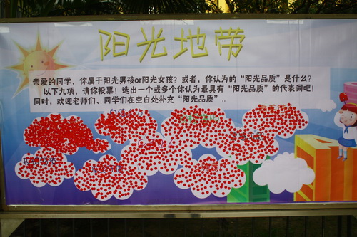3月14日, 我校中海校区举行第四周集体朝会。上周,我们面向全校同学征集阳光校园的品质,同学们都积极参与。“乐观开朗”,名列榜首,被大多数同学认同,“自信大方”、“积极锻炼”紧随其后,“积极进取”、“友善待人”也被很多人认可。看来,阳光校园需要阳光的生活态度,更重要的是需要一个健康的身体。身体是革命的本钱,是生活的基础。我们要阳光的生活,就需要积极锻炼,强健体魄!春天到了,各种病毒滋生,我们要勤洗手,多喝水,积极参与体育活动,让健康的生活伴随我们,与“阳光地带”一路同行!