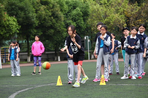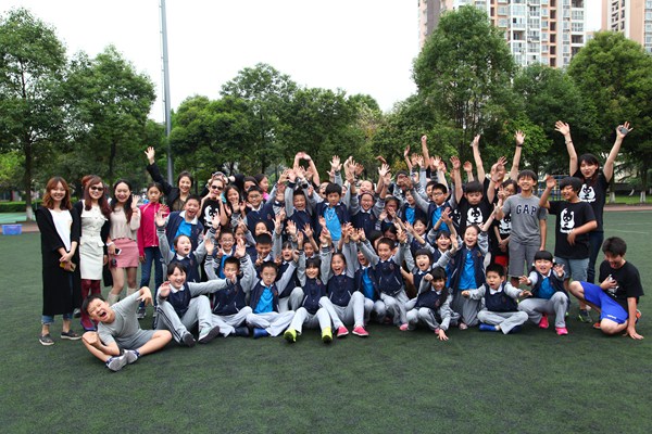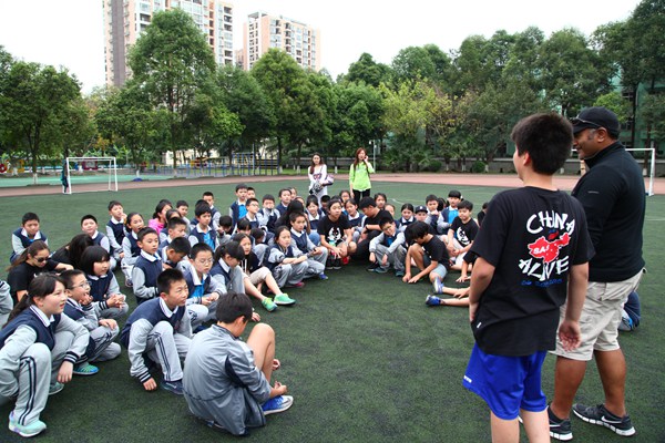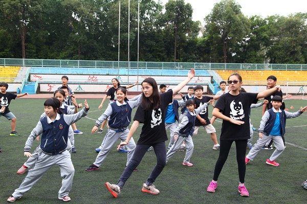 来自国际学校的老师带领大家做游戏