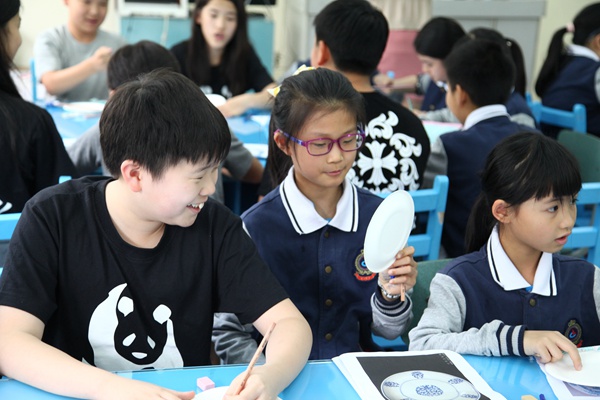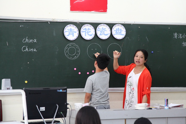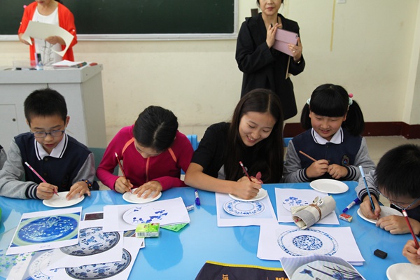 李文老师组织大家制作“青花瓷盘”