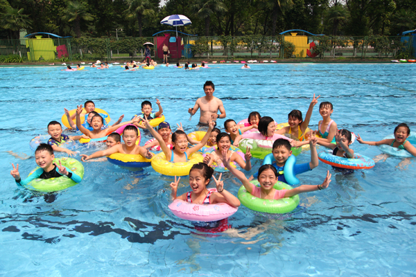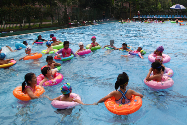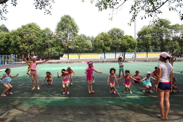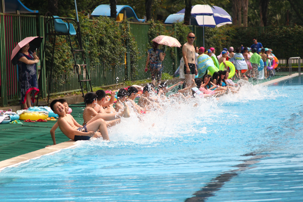 6月12日,孩子们盼望已久的游泳课开课啦!在体育老师讲解完游泳时需要注意的安全事项以后,孩子们认真地做着准备活动。