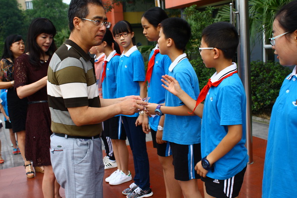 6月13日,我校中海校区举行第十七周集体朝会。六年级的同学们临近毕业,五年级的同学即将升为六年级开始新的旅程,让我们祝福他们!今天,我们邀请了两位六年级获得“双特”奖学金的同学来与大家分享自己的学习经验。合理利用时间,劳逸结合,总结归纳,脚踏实地,这些宝贵的学习经验让同学们受益匪浅。随后,我校领导为获得“最美微笑天使”和“书画童星”的同学颁奖!
