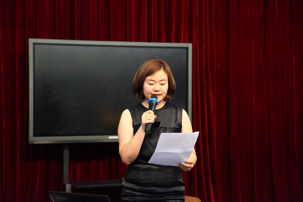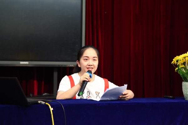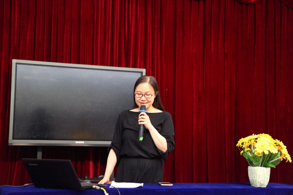 6月13日晚间,我校语文组在五楼阶梯教室召开了第三届学科带头人及优秀青年教师述职大会。各位优秀骨干教师梳理了自己两年来的工作历程,将其中的经验和感悟与大家进行了真诚的交流。图为赵静老师述职:《努力前行,一路阳光》。